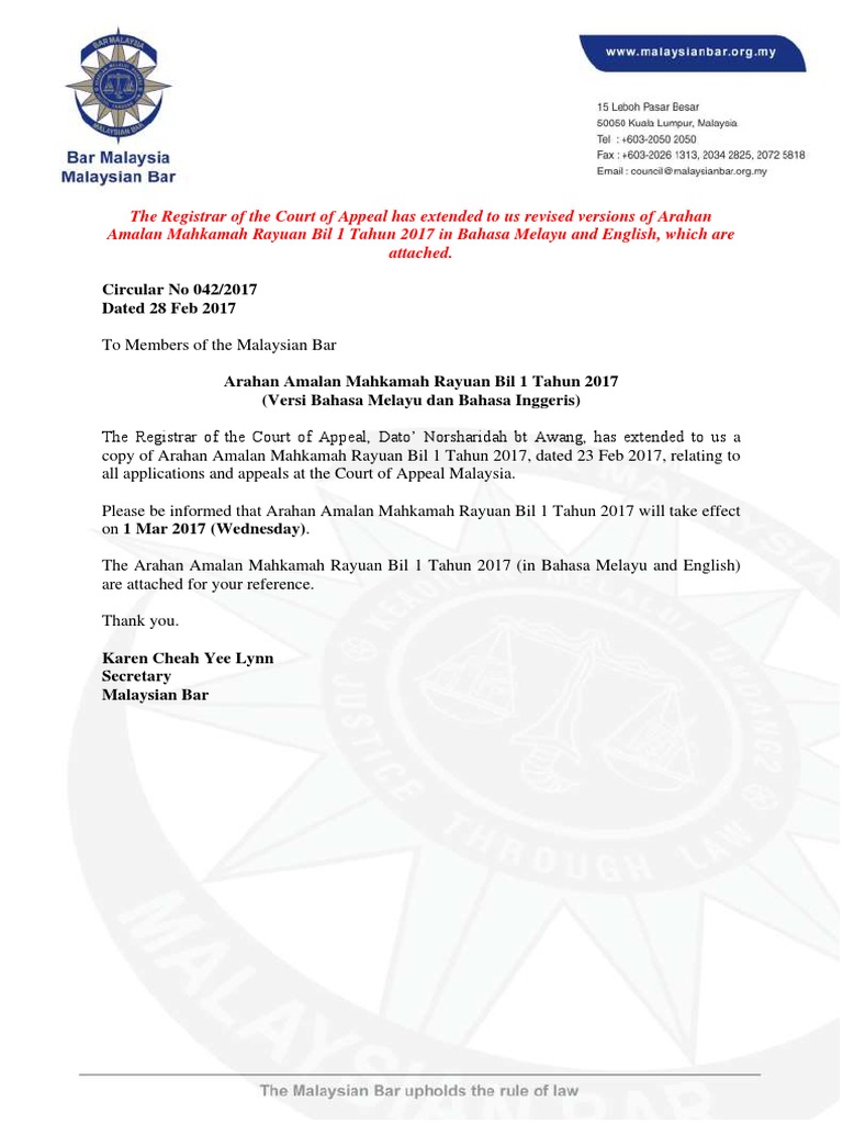 Arahan Amalan Mahkamah Rayuan / q (arahan amalan no.. Arahan amalan mahkamah rayuan bil 2 tahun 2015 | pengkelasan semula kod bagi rayuan sivil bicara penuh (ft) (bar council circular no 047/2015). Arahan amalan mahkamah syariah seluruh malaysia tahun 2006. Kerjasama tuan dalam hal ini amatlah dihargai. Arahan amalan mahkamah rayuan bil. Bahagian pengurusan kehakiman mahkamah rayuan & tinggi syariah.
