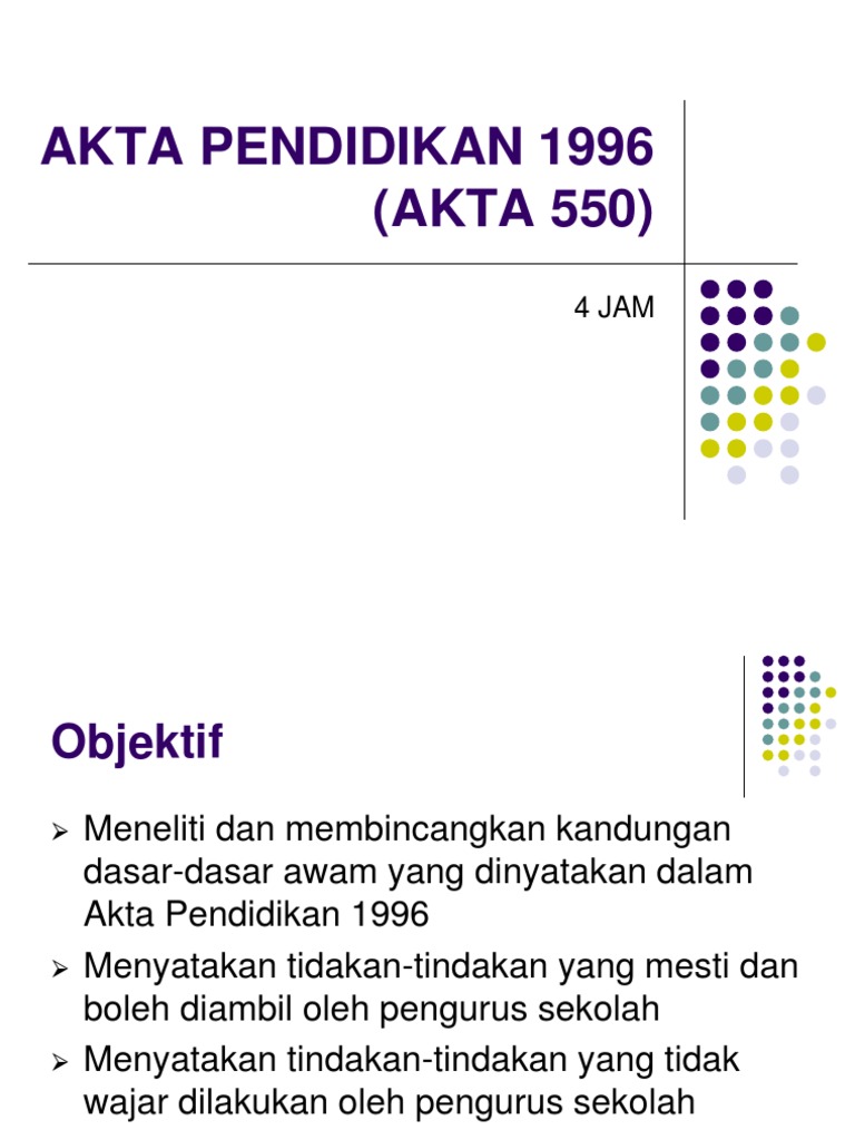 Related : Implikasi Akta Pendidikan 1996 - Perbandingan akta pendidikan 1996 & akta pelajaran 1961..