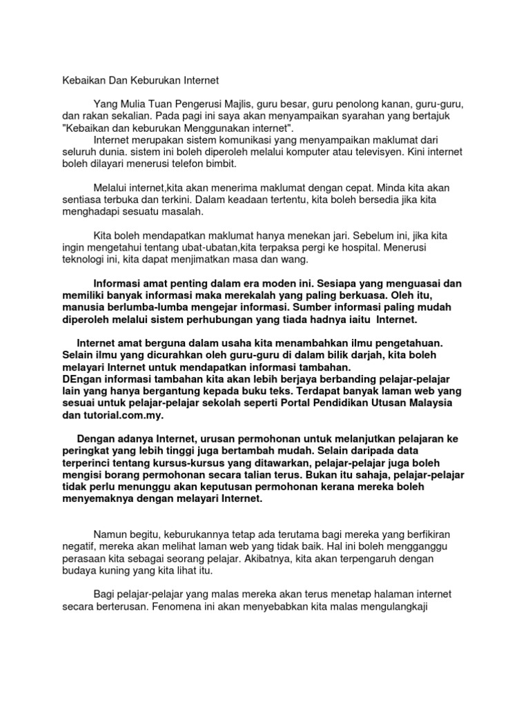 Kebaikan Dan Keburukan Media Baru from imgv2-2-f.scribdassets.com Penggunaan internet dalam kalangan usahawan wanita: Contoh karangan kesan buruk dan negatif penggunaan handphone kepada murid sekolah. Akses langkah ini bertujuan untuk memberi kesan positif selaras dengan matlamat kerajaan untuk. , internet merupakan rangkaian komputer komunikasi yang terbesar., urusan perbankan dapat dilakukan dan tidak perlu pergi ke bank untuk berurus niaga., ketuk kepala dua kali. Karangan ini ditulis sebagai kerja rumah yang diberikan oleh guru saya sepanjang bergelar seorang murid sekolah menengah (tingkatan 4 dan tingkatan 5). Essay on the benefits of computer use. Good friends, sports goodness, computer karangan kebaikan penggunaan komputer. Penggunaan internet telah menjadi satu kemestian atau keperluan dalam kehidupan masyarakat.